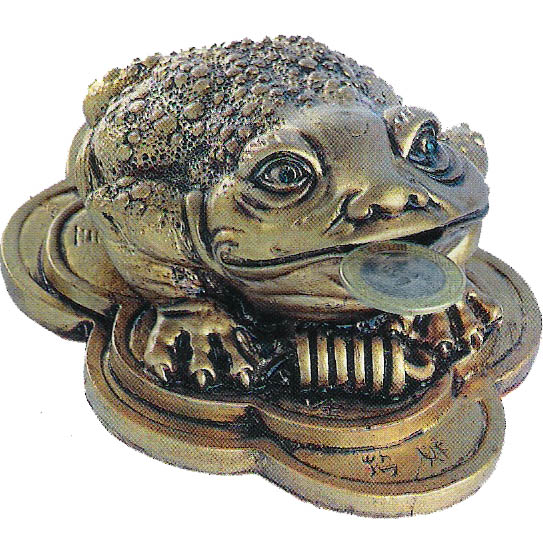 A imagem do sapo está relacionada à prosperidade. Os sapos de três pernas são símbolos importantes da cultura chinesa, pois ajudam na conquista de objetivos difíceis. Coloque a representação do sapo em uma mesa perto da porta de entra e deixe-o Olhando para ela. Você também pode espalhá-los em outros lugares como o jardim, o escritório e a sala. Mas convém nunca colocar mais do que nove sapos na mesma casa.